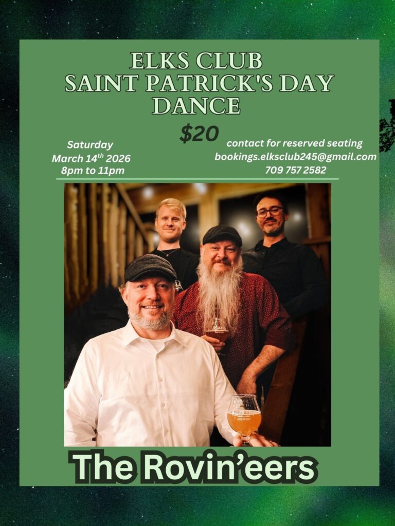 Tickets $20. Contact Bev at bookings.elksclub245@gmail.com or 709-757-2582 and arrange your Reserved Seating.